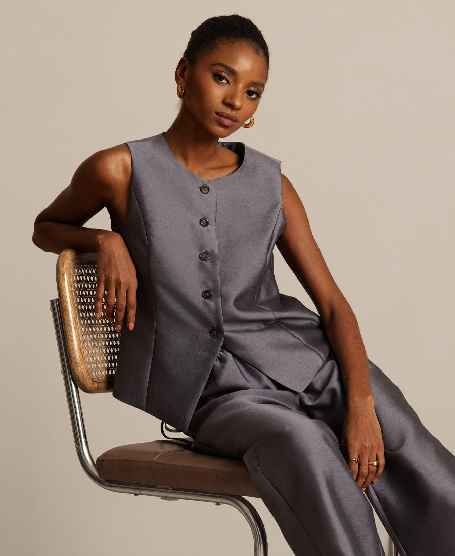 32Momme Silke-Uld Blanding Høj Talje Bred Ben Damebukser med Side Lommer Design