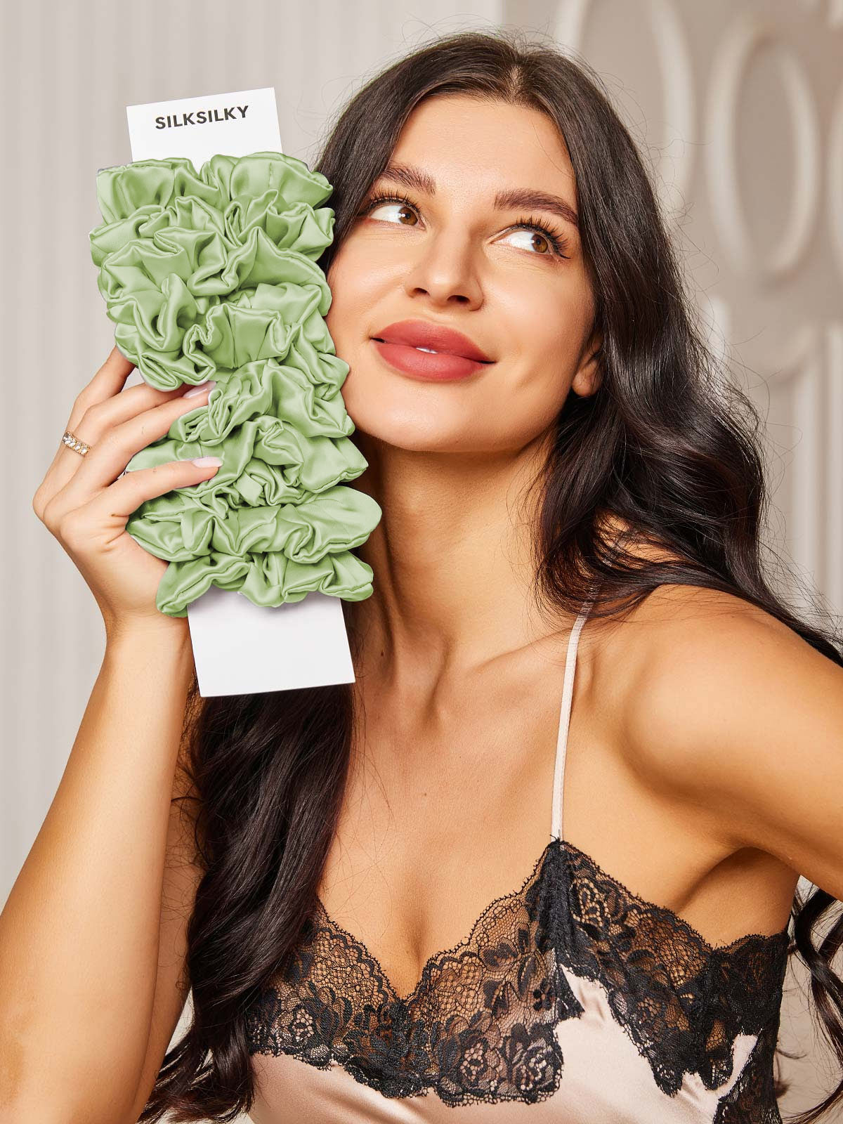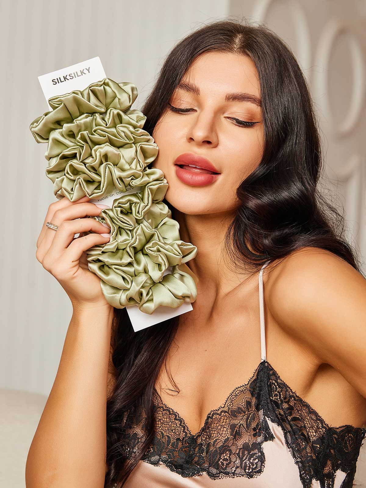 10 Stk 100% Silke Midnat Scrunchies - Almindelige - 2cm
