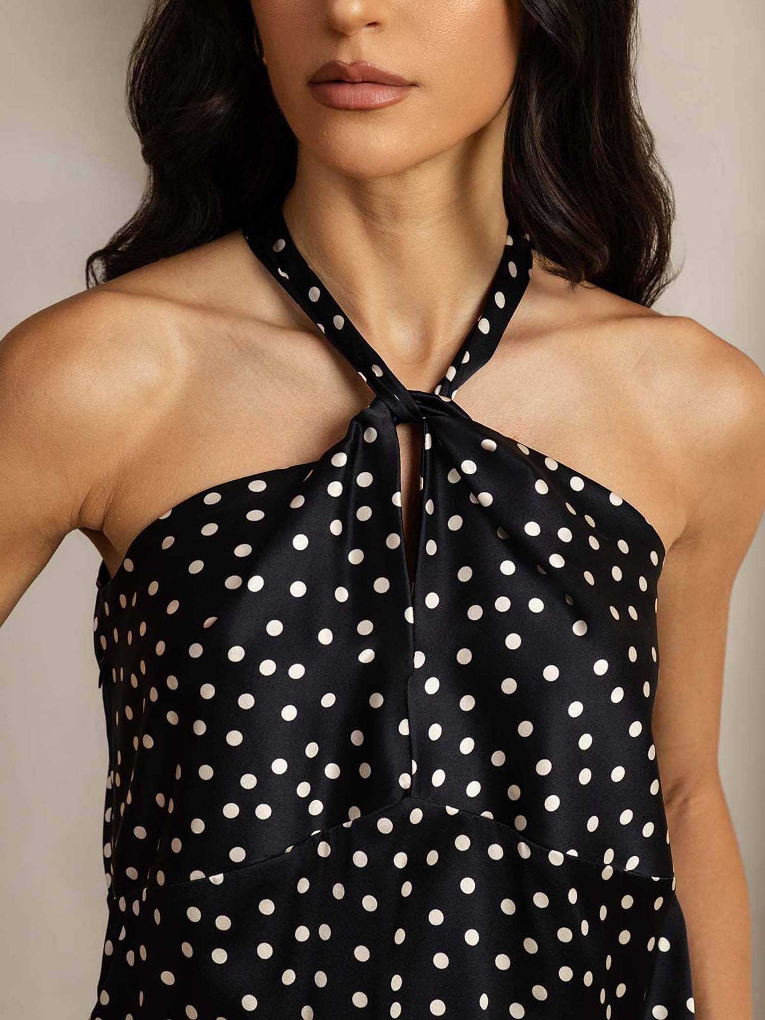 19Momme Silke Ærmeløs Prikket Halterneck Twist Top Med Knaplukning Bagpå