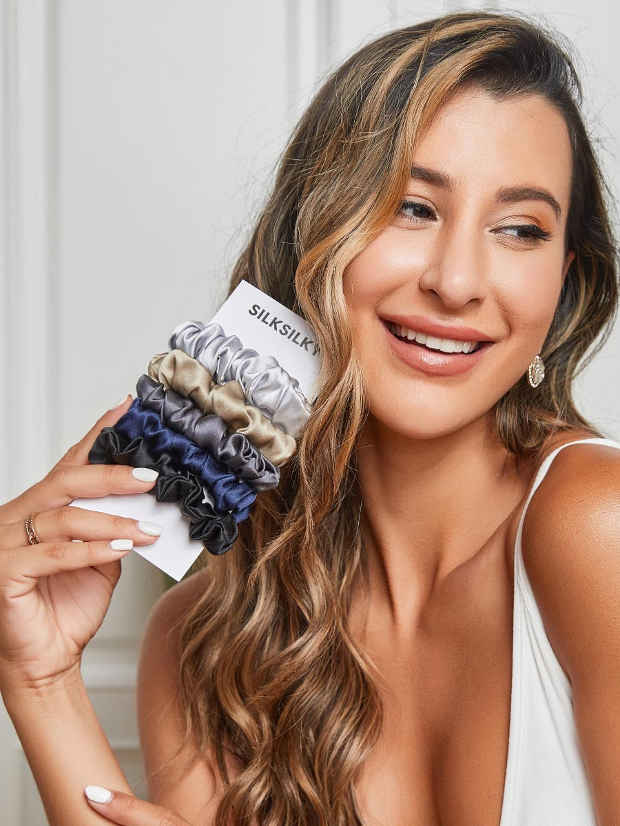 5 Stk 100% Silke Midnat Scrunchies - Almindelige - 2cm