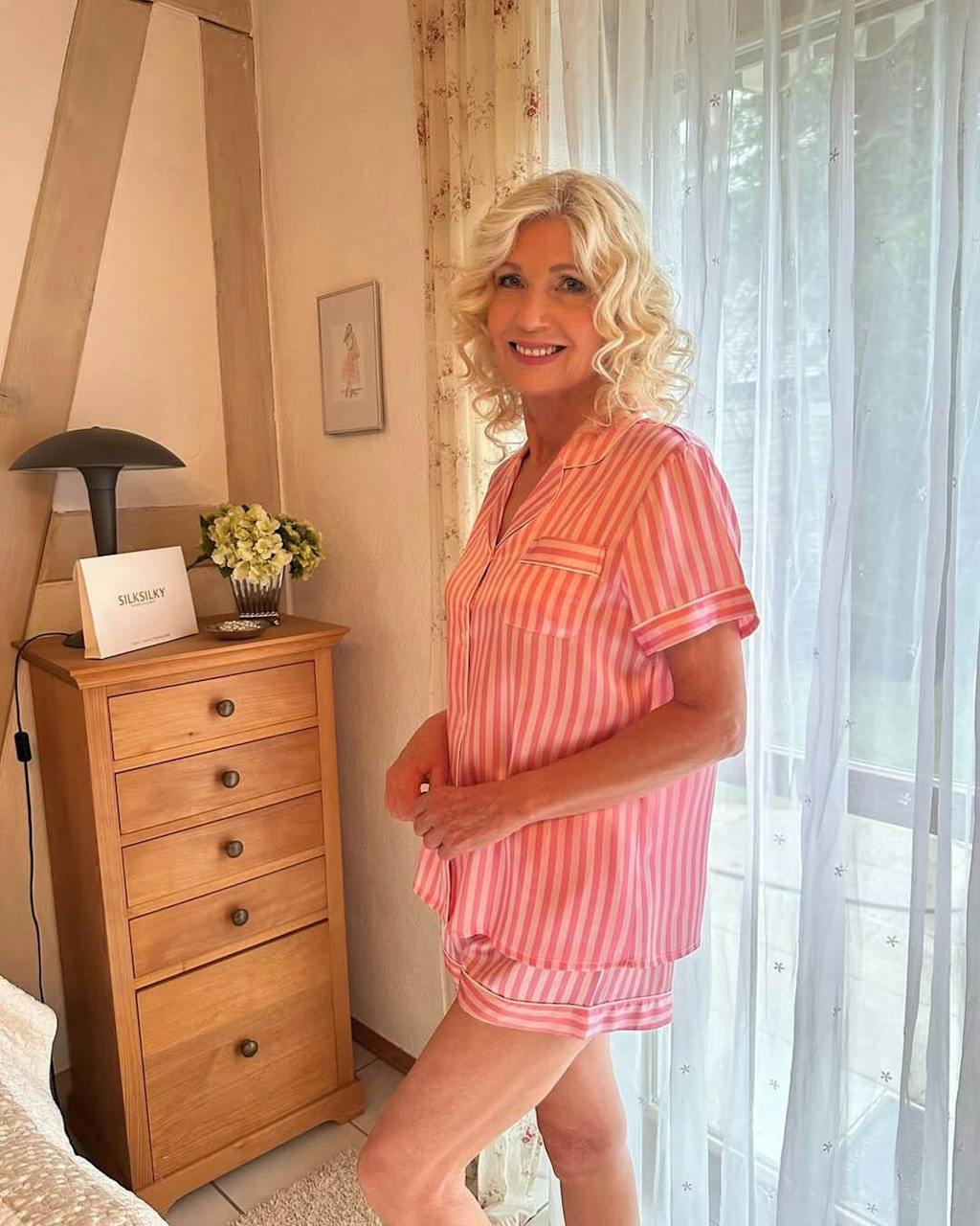 Nämä pyjamat ovat suloinen löytö – silkki on hellävaraista iholle ja pinkki tuntuu iloiselta nukkumaanmenoa varten!